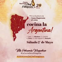 La 20ª edición de la Fiesta Nacional del Chef Patagónico 2026 se celebrará del 1 al 3 de mayo en Villa Pehuenia-Moquehue, Neuquén. Consolidándose como uno de los eventos gastronómicos más importantes de la Patagonia. Este evento destacado reunirá a chefs de renombre, productores locales y propuestas culinarias de la Patagonia, Argentina y Chile, con Dolli Irigoyen como madrina de la edición. Entre las actividades tendrá como siempre, Clases magistrales de cocina en vivo, patios gastronómicos con ingredientes locales (piñón, chivo, trucha), y productos artesanales. Además, contara con Invitados Destacados como lo son: Dolli Irigoyen (madrina), Pablo Buzzo (Neuquén), Tupac Guantay (Salta), y Alejandro Eugenio Sura (Chile), entre otros.